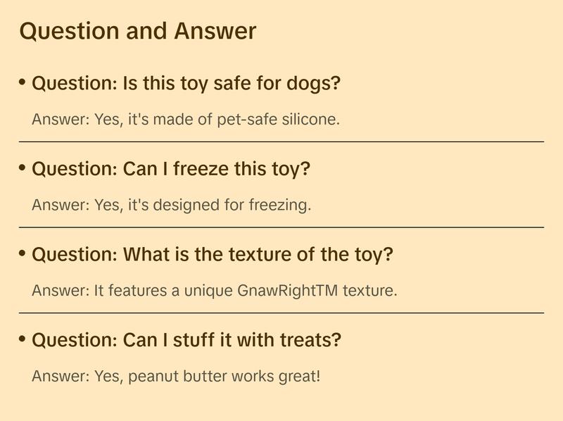 Calling all puppies! When all you wanna do is chew, the Yomp ChillChew is just what the dog-tor ordered. Made from food-grade silicone with our unique GnawRightTM texture, it's the perfect toy to keep the chew-hounds happy (and away from your shoes!). Stuff it with peanut butter for extra Yomp-appeal, or pop it in the freezer for a cool, soothing sensation on teething puppies' gums.